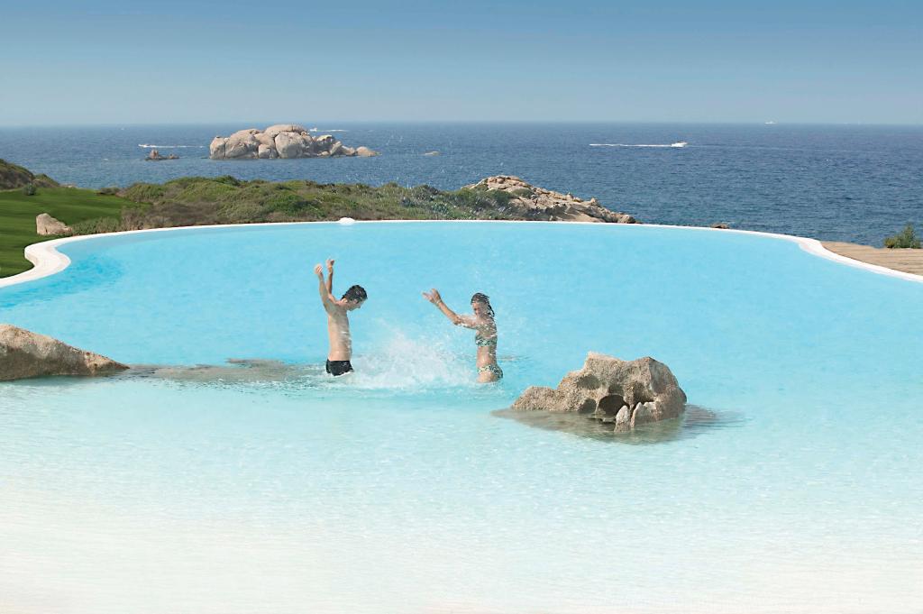 Le 4 piscine offrono la vista sull’Archipelago: 3 con acqua di mare, di cui una per adulti e una per bambini in Hotel Erica, una con tre grandi vasche, collegate tra loro da cascate tra le rocce naturali in Hotel La Licciola e un’altra di acqua dolce in area “Exclusive” con vista panoramica sul mare.