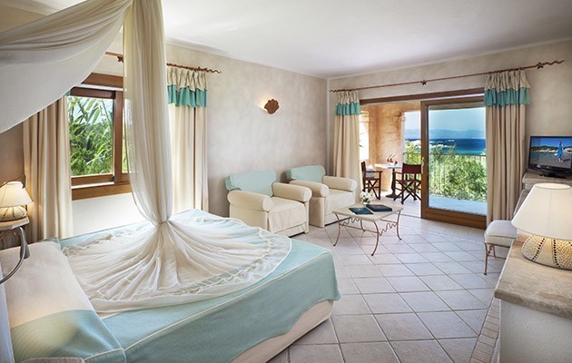 Camere: 148 tra camere, Junior Suite e Suite, distanti da 80 a 200 metri dal mare. Tutte le camere sono al piano terra e con ingresso indipendente, arredate in fresco stile mediterraneo e arricchite con oggetti realizzati a mano da artigiani locali. La connessione Wi-Fi è disponibile gratuita in tutto il resort e nelle verande delle camere.