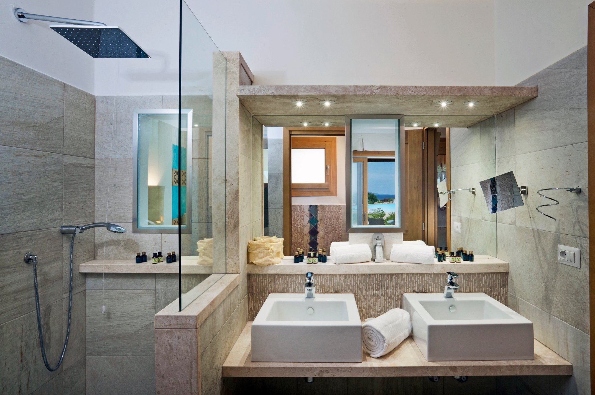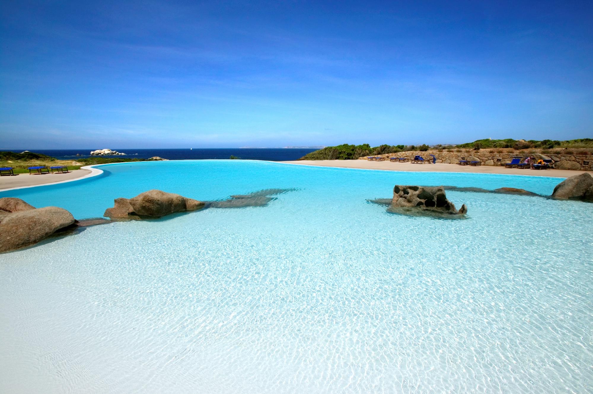 Le 4 piscine offrono la vista sull’Archipelago: 3 con acqua di mare, di cui una per adulti e una per bambini in Hotel Erica, una con tre grandi vasche, collegate tra loro da cascate tra le rocce naturali in Hotel La Licciola e un’altra di acqua dolce in area “Exclusive” con vista panoramica sul mare.