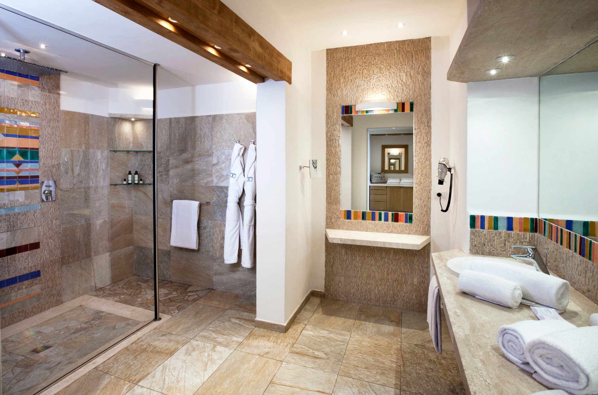 Camere: 148 tra camere, Junior Suite e Suite, distanti da 80 a 200 metri dal mare. Tutte le camere sono al piano terra e con ingresso indipendente, arredate in fresco stile mediterraneo e arricchite con oggetti realizzati a mano da artigiani locali. La connessione Wi-Fi è disponibile gratuita in tutto il resort e nelle verande delle camere.