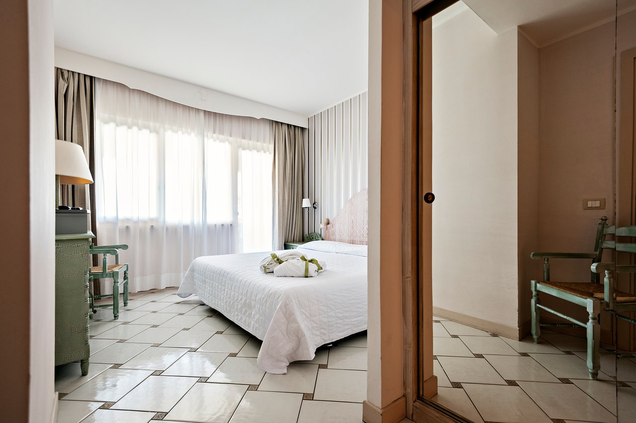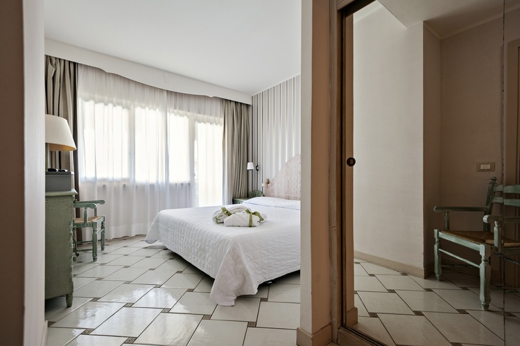 Sistemazione: Camere con aria condizionata, telefono, tv, minibar, cassetta di sicurezza e servizi, alcune con balcone. Classic per 2 persone, in stile moderno; Suite Superior per 2/4 persone con camera matrimoniale, soggiorno con divano letto ed eleganti arredi, alcune con balcone o terrazzo con vista sul parco. Suite Vip per 3/5 persone, come le precedenti, con doppi servizi, vista sul parco nella parte posteriore dell’hotel, alcune dotate di un patio attrezzato. Suite Deluxe per 3/4 persone, vista parco e vista piscina, con camera e soggiorno, balcone o giardino.