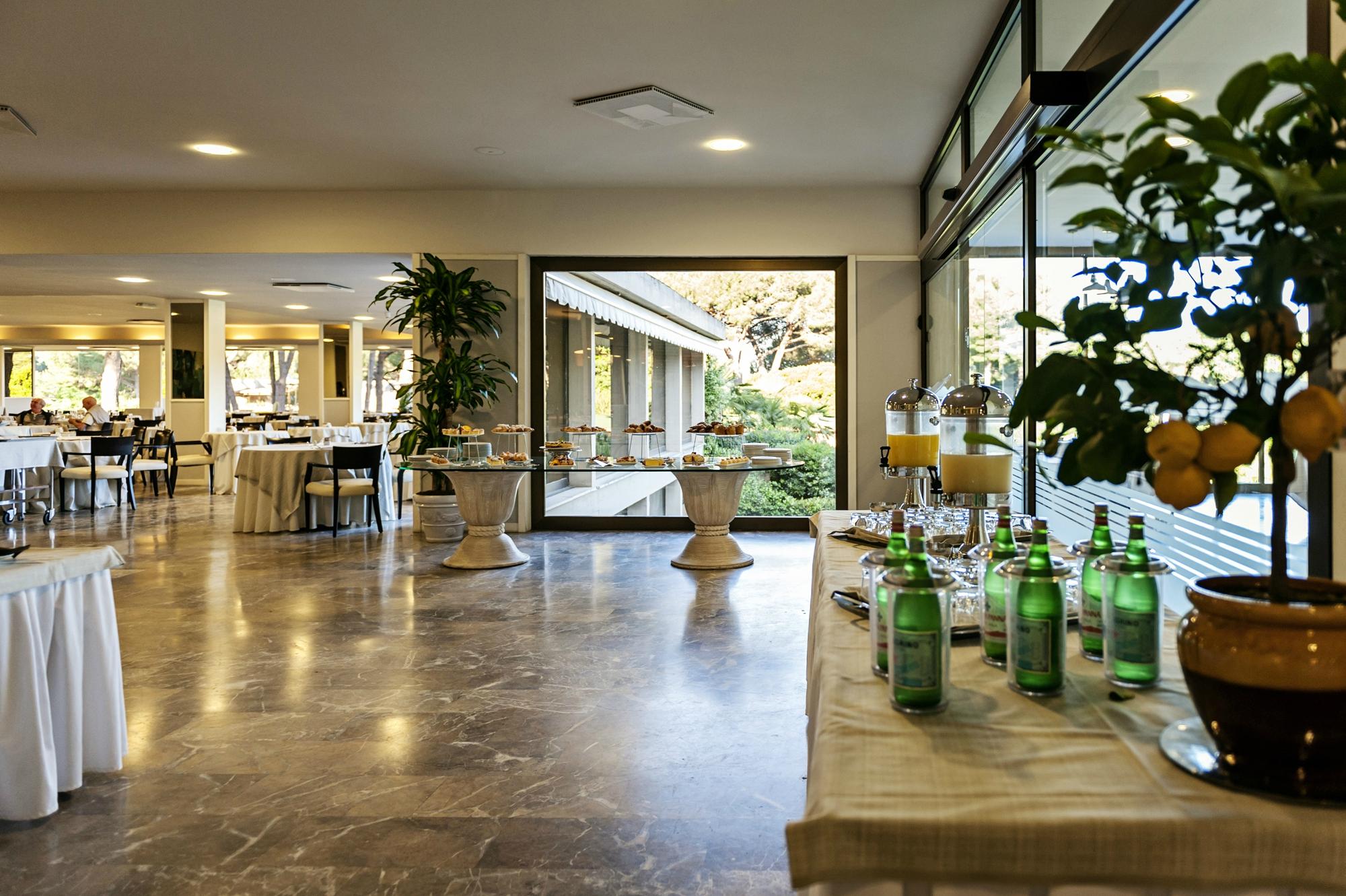 Ristorazione: Prima colazione a buffet, pasti con servizio al tavolo o a buffet a discrezione della Direzione. Possibilità di light lunch in spiaggia o in piscina a pagamento. Possibilità su richiesta di menu vegetariani, vegani, diete speciali, per celiaci e a regime ipocalorico.
