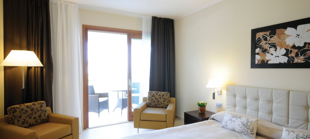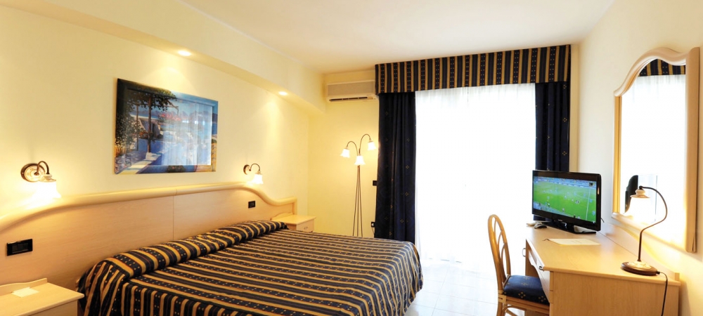 Camere: L'hotel, in parte rinnovato, dispone di 175 camere: 5 Lussuose Suite, 2 Junior Suite, 2 Luxury Room, 39 Superior e 127 camere Standard composte da doppie, doppie per portatori di handicap, triple, camere intercomunicanti e quadruple. Le camere standard, quasi tutte fronte mare, sono dotate di: servizi privati con doccia (alcune anche con vasca), climatizzatore, telefono, tv, SKY, mini frigo (rifornimento su richiesta), asciugacapelli, cassaforte, balcone attrezzato. Le camere “Superior” ( solo doppie e triple), situate nel blocco centrale e nei piani più alti e panoramici, sono camere completamente ristrutturate e, oltre ai comfort delle standard, offrono un arredamento moderno e elegante. Inoltre sono dotate di molti accessori e servizi aggiuntivi tra cui, TV LCD e prima colazione servita al Ristorante “Il Belvedere” (Luglio e Agosto). Le Luxury Suite (solo doppie e triple), le Junior Suite (solo doppie e triple) e le Luxury Room (solo doppie), in aggiunta ai comfort e ai servizi delle camere “Superior”, hanno ampi spazi, arredamenti naturali e moderni, TV LCD con impianto Stereo e Cinema, Jacuzzi ed una vista mare esclusiva; accesso incluso al Ristorante “Il Belvedere” con menù dedicato, bevande escluse (servizio disponibile nei periodi di luglio e agosto) Pugnochiuso Card e servizio spiaggia in 1° fila sono inclusi.