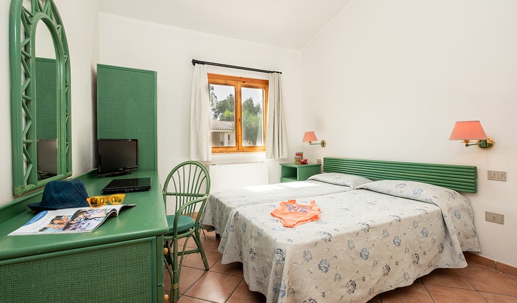 Camere: Le unità abitative, 134 in tutto, si dividono in Camere Standard e Camere Garden. Strutturate sul modello di villette a schiera ad unico piano e con giardinetto, possono essere a due, tre e quattro posti letto (le quadruple sono composte da due vani e due bagni). Disponibili anche alcune unità a cinque posti letto composte da tre vani e due bagni. Dispongono tutte di servizi privati, aria condizionata con regolazione autonoma, telefono, TV, phon e frigobar (servizio di riempimento su richiesta).
