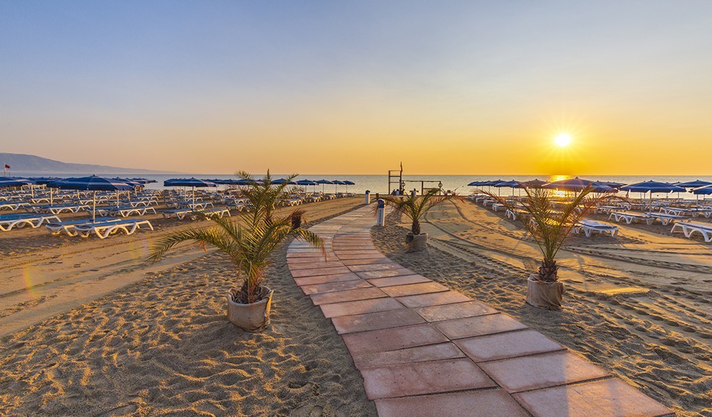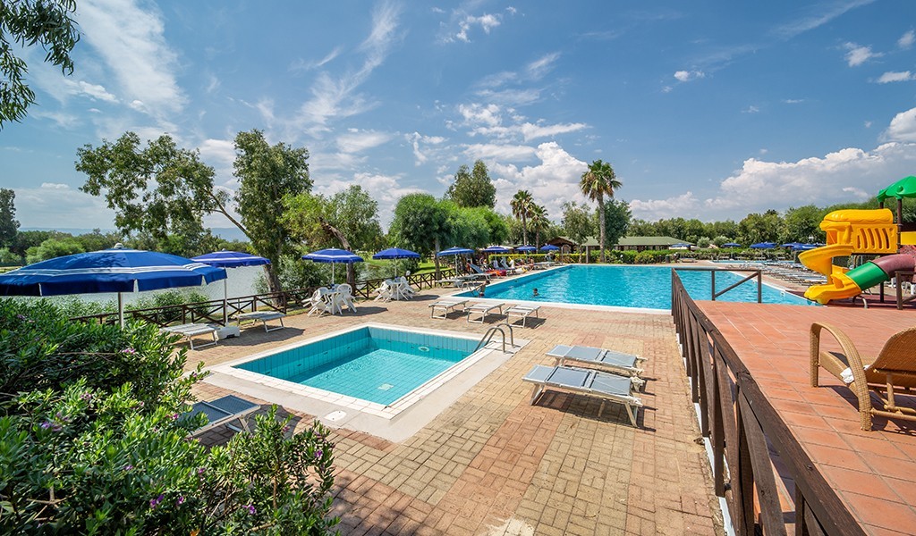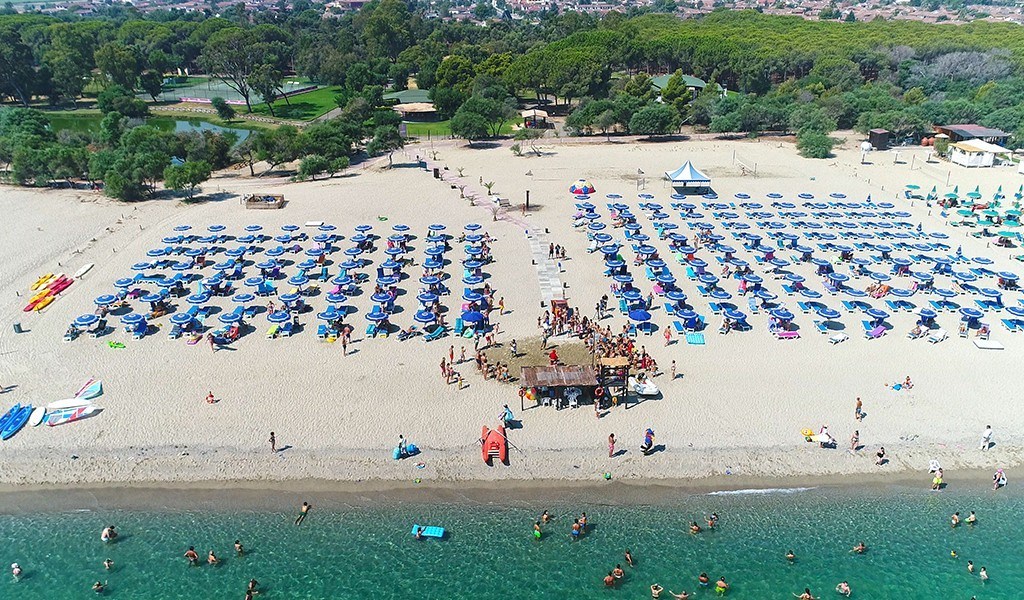 Spiaggia: Sul lungo litorale, a circa 300 mt, la struttura dispone di una spiaggia privata, di sabbia dove, a camera, è disponibile un ombrellone e due lettini a partire dalla 3° fila. E’ comodamente raggiungibile a piedi tramite le stradine che attraversano la pineta che circonda il villaggio.