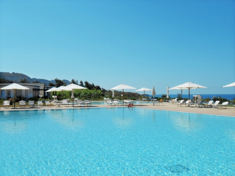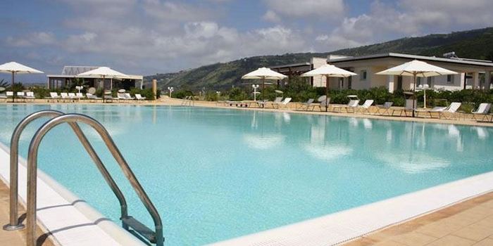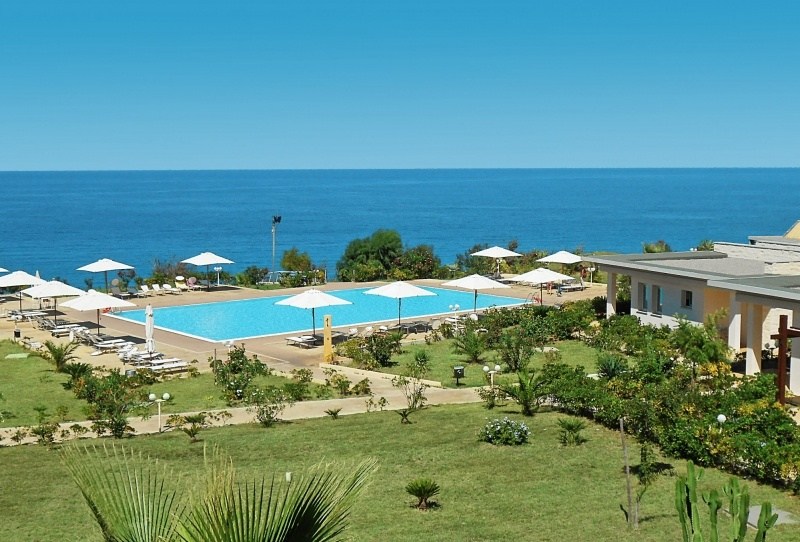 Spiaggia: a 200 m ca, di sabbia e ciottoli, privata e attrezzata, con bar, raggiungibile con servizio navetta ad orari stabiliti o a piedi, tramite viale interno, che si snoda tra la ricca vegetazione di fichi d’india, oleandri ed eucaliptus, fino al viale del lungomare. L'ingresso in acqua è in parte caratterizzato da scogli (si consiglia l'uso scarpette per la balneazione). Servizio spiaggia incluso nella Tessera Club a partire dalla 2° fila (1 ombrellone + 1 lettino + 1 sdraio a camera).