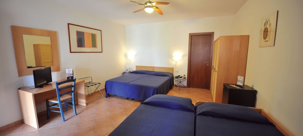 Camere: 456 Camere tra doppie, triple e quadruple (queste ultime disponibili solo a piano terra con letto a castello o 2 letti singoli bassi; camere triple e triple più culla al primo piano - ascensori non presenti). Camere fino a 5 persone su richiesta, previa disponibilità; si tratta di quadruple adattate a quintuple con letto a castello + 1 letto singolo o 3 letti singoli bassi, unico vano, unico bagno. Tutte le camere sono arredate in stile mediterraneo, hanno servizi con doccia dotata di box, telefono, aria condizionata, Tv, frigorifero, asciugacapelli, terrazza o patio con tavolino e due sedie. Le segnalazioni circa l’assegnazione della camera non sono garantite e dipendono dalla disponibilità dell’albergo; cambio camera a pagamento Euro 25 a camera.